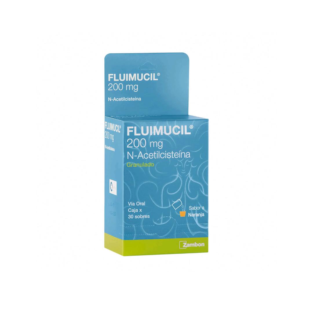 Fluimucil 200 mg polvo granulado en caja por 30 sobres. Tratamiento mucolítico a base de acetilcisteína, indicado para fluidificar y eliminar secreciones bronquiales en casos de tos productiva, bronquitis, EPOC y otras enfermedades respiratorias. Reduce la viscosidad del moco, facilitando su expulsión y mejorando la respiración. Presentación en sobres de fácil disolución, ideal para adultos y adolescentes. Sabor agradable. Uso bajo indicación médica.