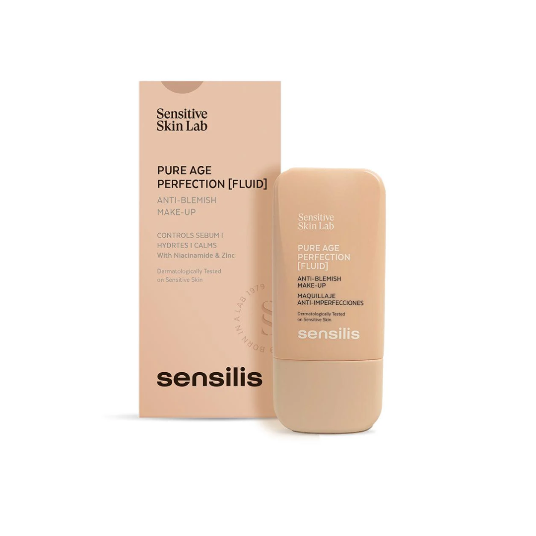 Sensilis Pure Age Perfection es un maquillaje fluido matificante de alta cobertura y larga duración que controla el sebo y minimiza poros e imperfecciones. Su fórmula con Zinc regula la secreción sebácea, mientras que las ceramidas y niacinamida hidratan y reparan la barrera cutánea. Emulsión facial tono beige que unifica el tono y mejora la textura de la piel. Ideal para piel mixta a grasa.