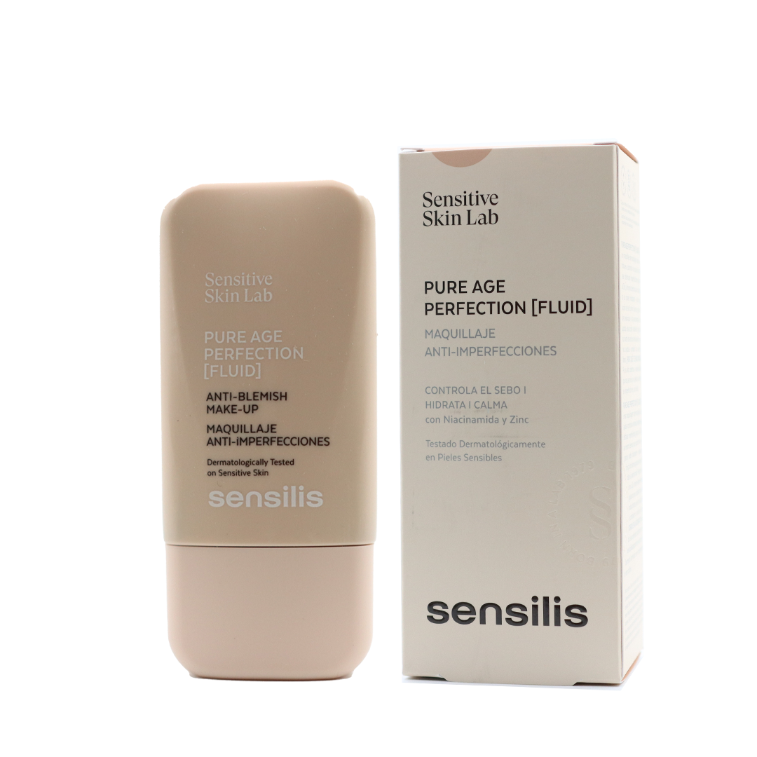 Sensilis Pure Age Perfection es un fluido antiimperfecciones que regula la secreción sebácea, minimiza poros y corrige imperfecciones gracias al Zinc. Su fórmula con ceramidas y niacinamida fortalece la barrera cutánea, aportando hidratación y elasticidad. Emulsión con color que unifica el tono y mejora la textura de la piel a la vez funcionando como hidratante matificante facial, ideal para piel mixta a grasa, con efecto perfeccionador y de larga duración.